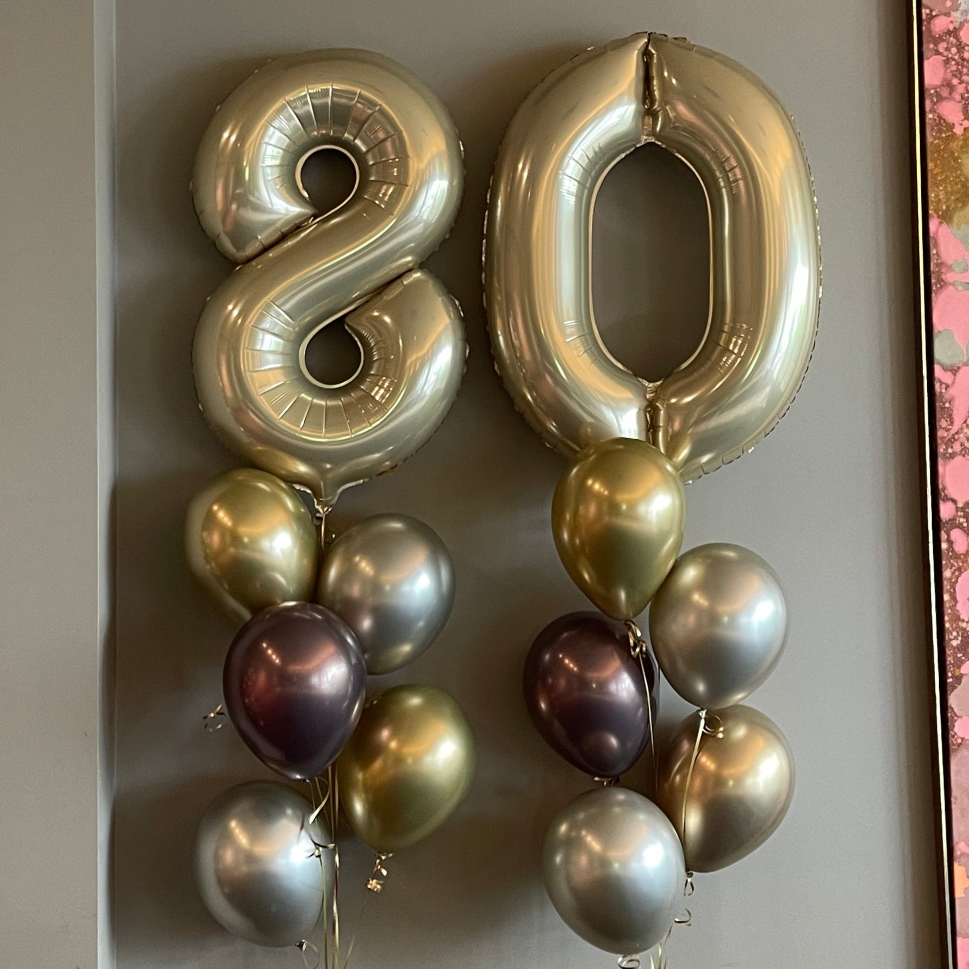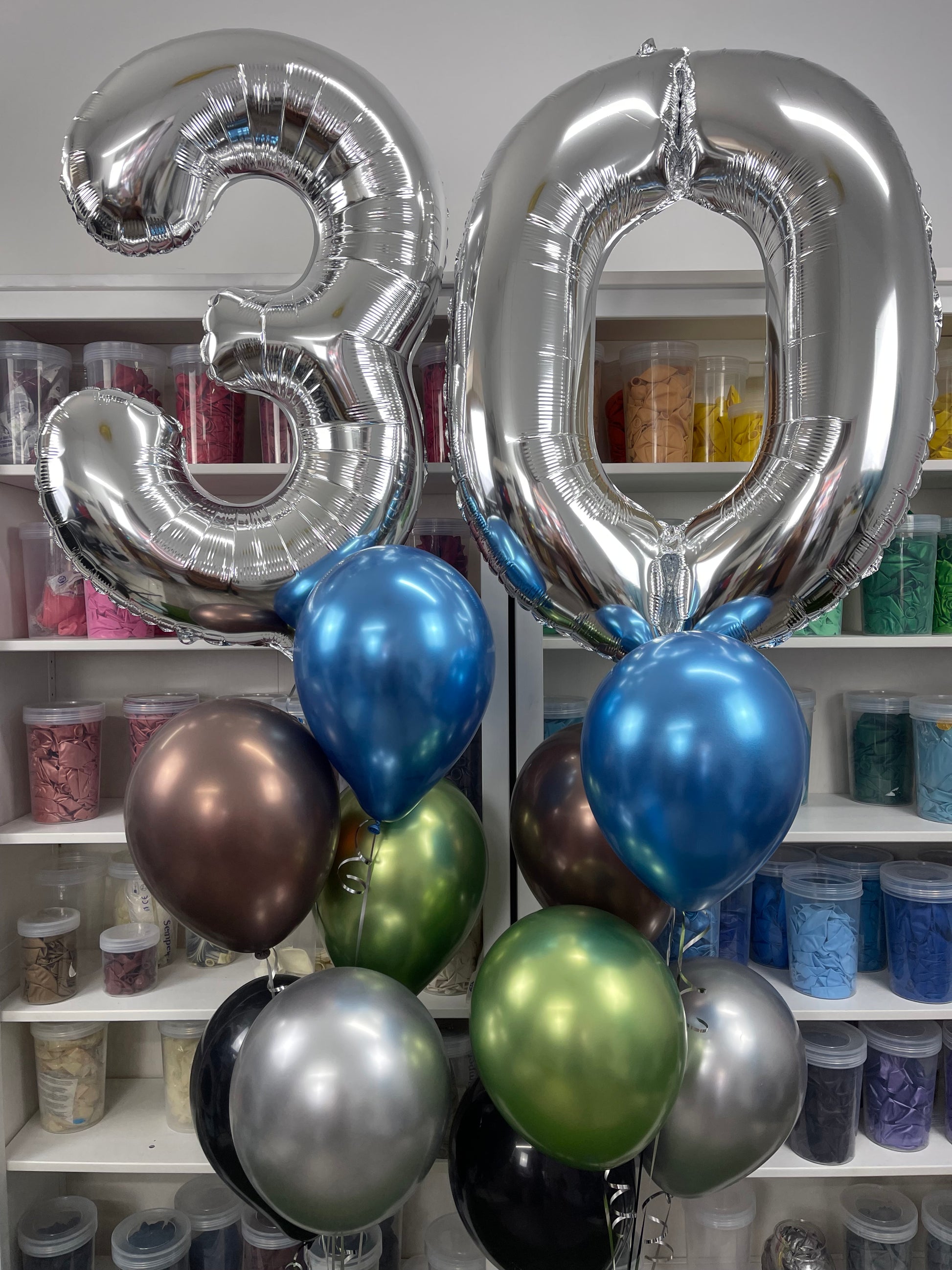 2 Large Number Balloon Bouquet and 10 metallic latex