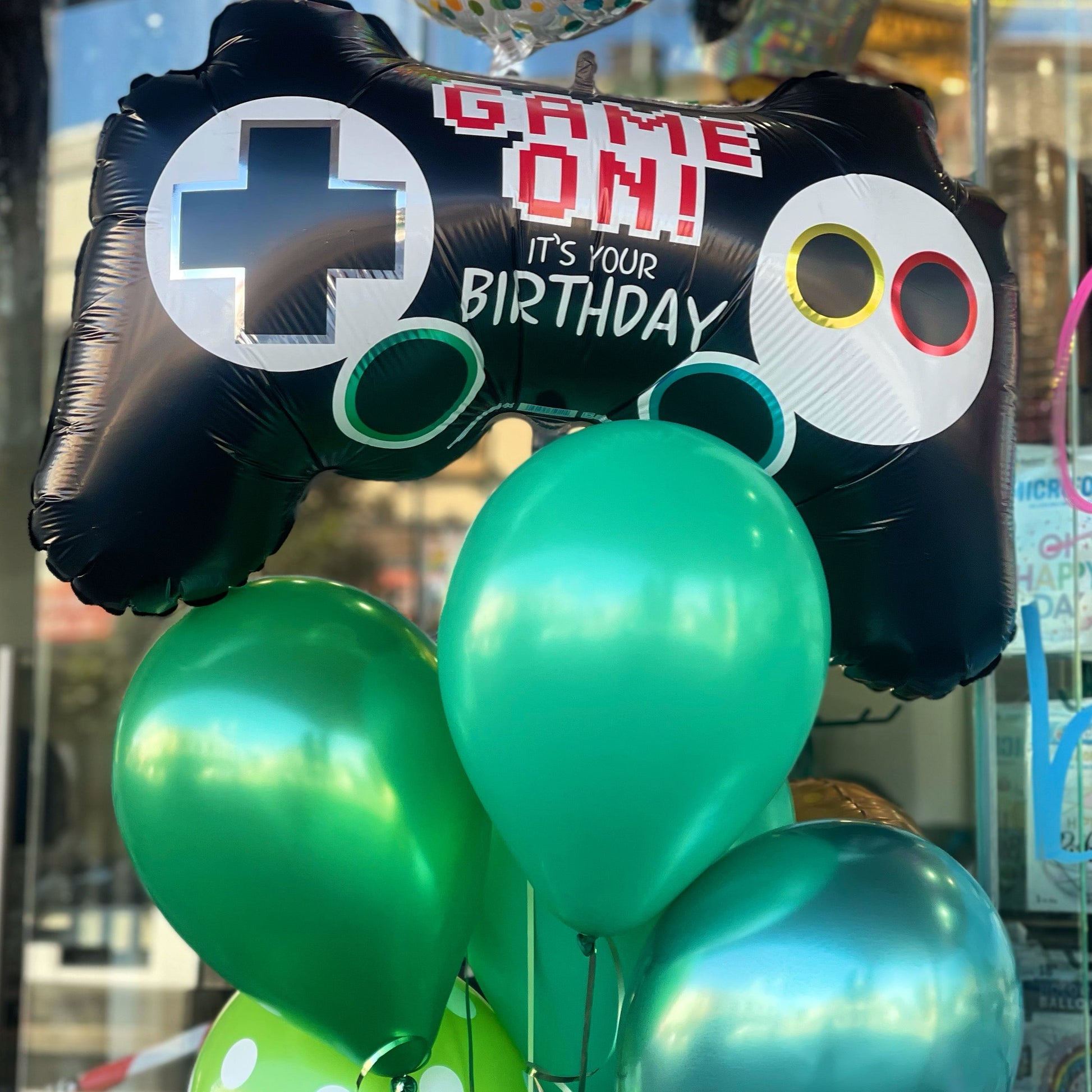 Elevate your little gamer's birthday celebration with our captivating Little Gamer's Birthday Bouquet, featuring a large 91cm helium foil Game Controller balloon as the focal point, complemented by five latex balloons in your choice of colours. Customise your bouquet to reflect the birthday gamer's personality and interests, with options for specific balloon preferences or combinations available upon request.