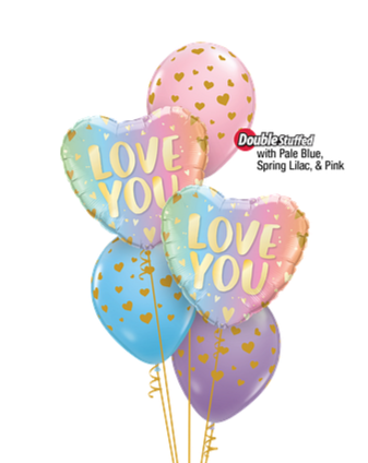The Thinking of You Mum Bouquet features two 45cm Love You heart balloons in enchanting ombre and pastel hues, symbolsing the depth of your affection and gratitude for Mum. These balloons serve as a touching gesture to let Mum know she's always in your thoughts and heart.